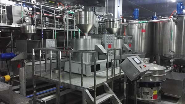本生產線的調漿罐裝有攪拌裝置,在定量粉體喂料機的配合下將米漿調整到合適的狀態,并防止米漿沉淀。本機的儲漿罐配有液位計和攪拌裝置,保證漿液不發生沉淀,布漿均勻。