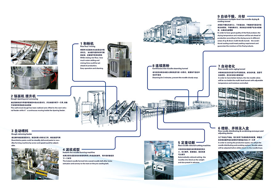 冷卻后的米粉被自動切斷成設定的大小,切口整齊,重量穩定,面塊寬度及長度可以調節;