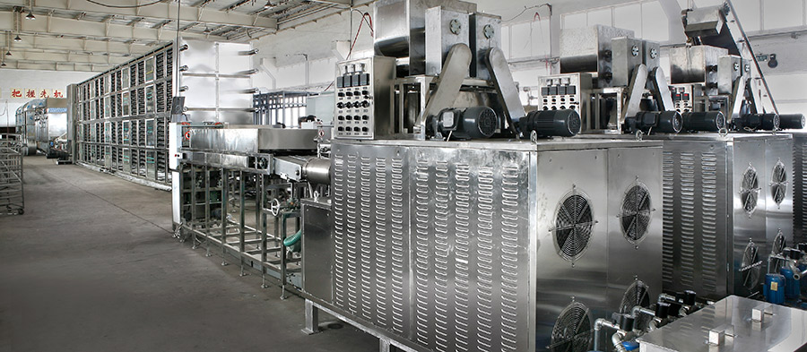 經兩次擠壓成型后的米粉落到網帶上形成波紋面帶, 預冷卻后輸送至下一個環節;